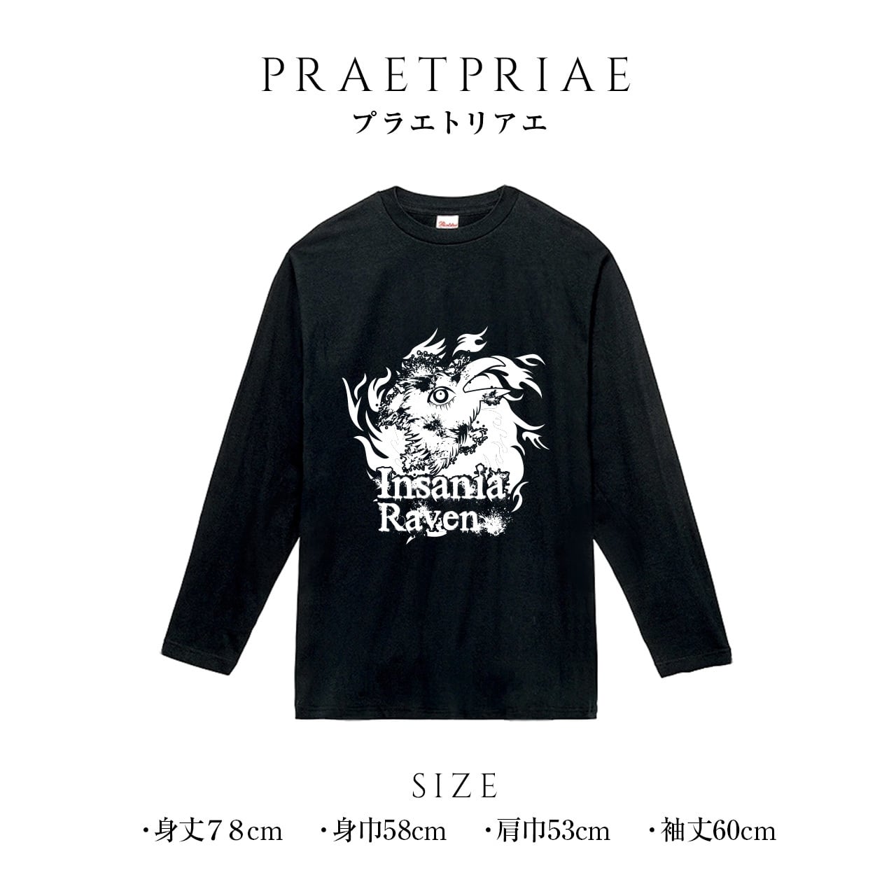新商品 送料無料 insaniaraven インサニアレイヴン PRAETORIAE プラエトリアエ プリントTシャツ 黒 ブラック Tシャツ 長袖 ロンT ロングTシャツ トップス ビッグサイズ ビッグシルエット 大きめ ゆったり XL おしゃれ かわいい ロゴ ロゴT カラス 烏 渡鴉 サブカル ロック パンク サブカル ゴシック 病み系 個性 オリジナル ブランド 男女兼用 ユニセックス ジェンダーレス ジェンダーレス男子 ジェンダーレス女子