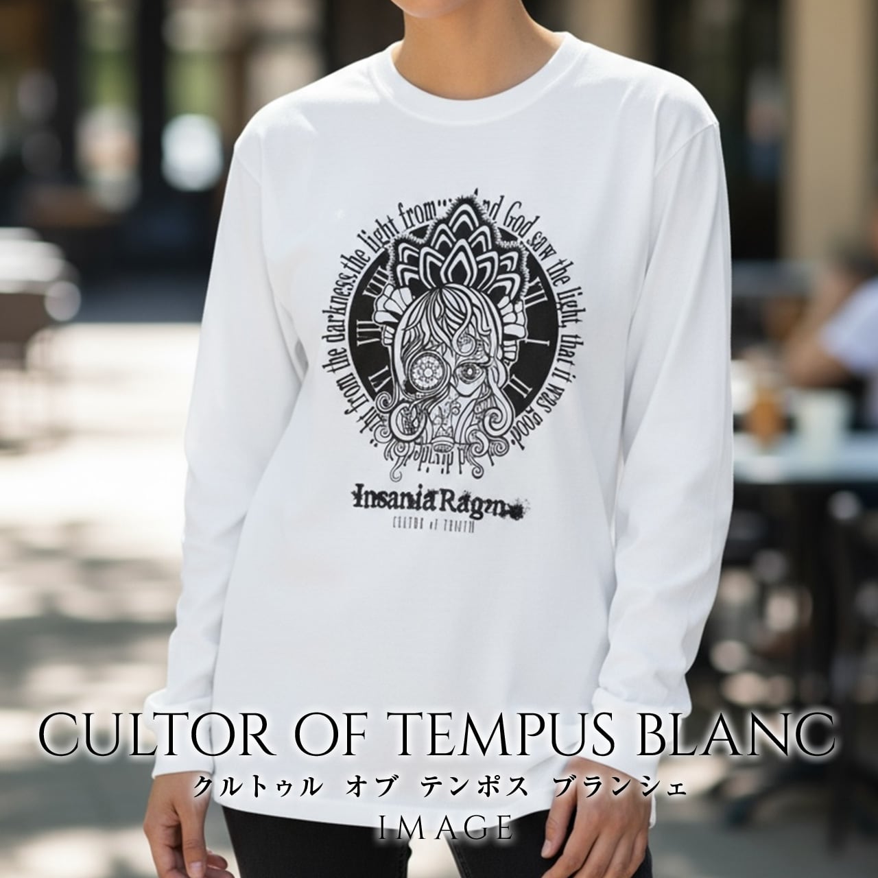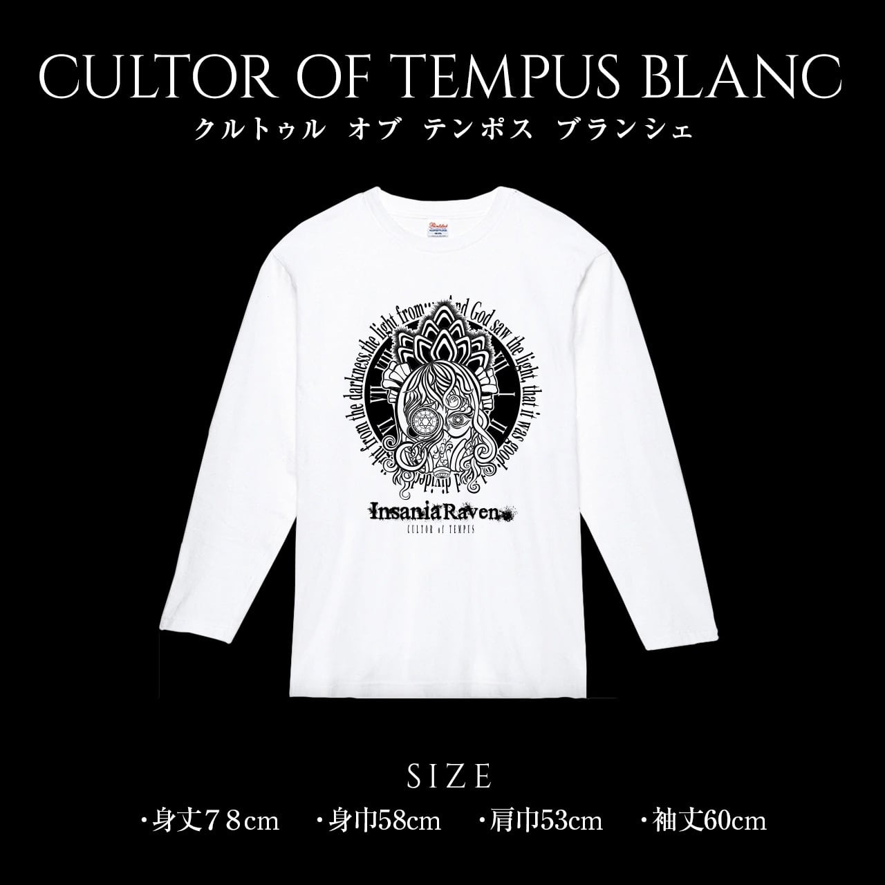 新商品 送料無料 insaniaraven インサニアレイヴン CULTOR OF TEMPUS BLANC クルトゥル オブ テンポス ブランシェ プリントTシャツ 色 ホワイト Tシャツ 長袖 ロンT ロングTシャツ トップス ビッグサイズ ビッグシルエット 大きめ ゆったり XL おしゃれ かわいい サブカル ロック パンク サブカル ゴシック 個性 オリジナル ブランド 男女兼用 ユニセックス ジェンダーレス